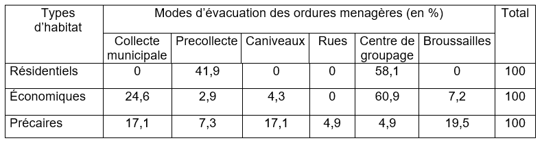 Tableau n°5 : Modes d’évacuation des ordures ménagères par les ménages