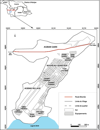 Le village de Songon-Agban est une localité de la commune de Songon, située à l’ouest dans le District Autonome d’Abidjan et à 35 km de la ville d’Abidjan. Cette commune est limitée au nord, par la Sous-préfecture d’Anyama, au sud, par la lagune Ebrié, à l’Est, par la Commune de Yopougon et à l’ouest par la Sous-préfecture de Dabou (Carte n°1).