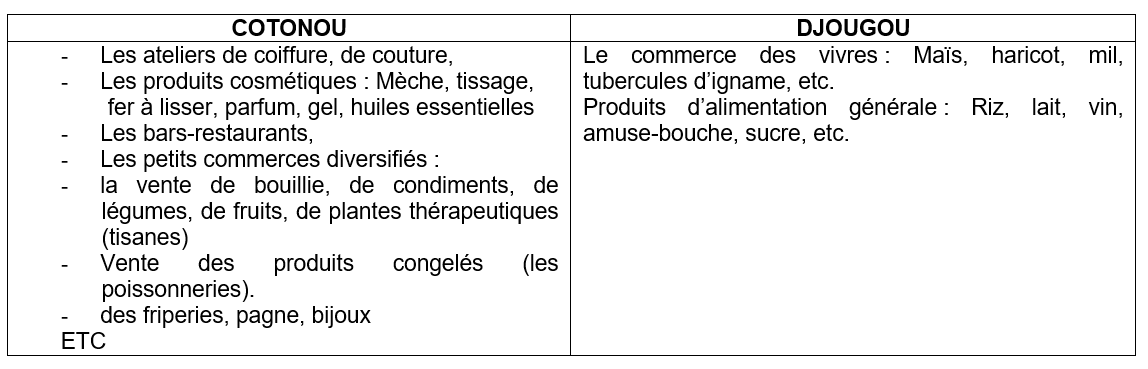 Tableau n°1 : Typologie des AGR à Cotonou et à Djougou.