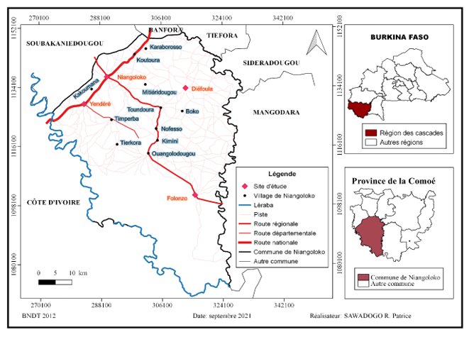 Carte n°1 Localisation de la commune de Niangoloko et les sites d’étude
