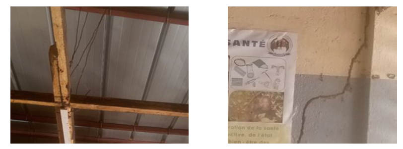 Les images ci-dessus montrent un mur fissuré de haut en bas (1b) et un toit où le plafonnage n’existe plus par endroit (1a). Ces fissures au-delà d’être des endroits de refuge des reptiles nuisibles à la santé humaine peuvent entrainer l’effondrement du bâtiment. En plus, de l’état des bâtiments, retenons que l’ensemble des formations sanitaires publiques ne sont pas clôturés exception fait des CSPS des secteurs n°3 et n°5. Cette situation expose les usagers et le personnel de santé à des risques de tout genre : divagation des animaux, nuisances sonores dues à la traversée des cours par les engins, insécurité. Il faut noter que certaines structures sanitaires notamment celles qui sont situées en milieu rural tels que les CSPS de Kimini, Nofesso, Boko et le cabinet Yahvé Shamma ne sont pas connectés au réseau électrique de la nationale d’électricité (SONABEL). Cette situation complique la prise en charge des patients surtout en période d’hivernage.